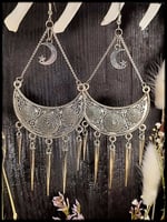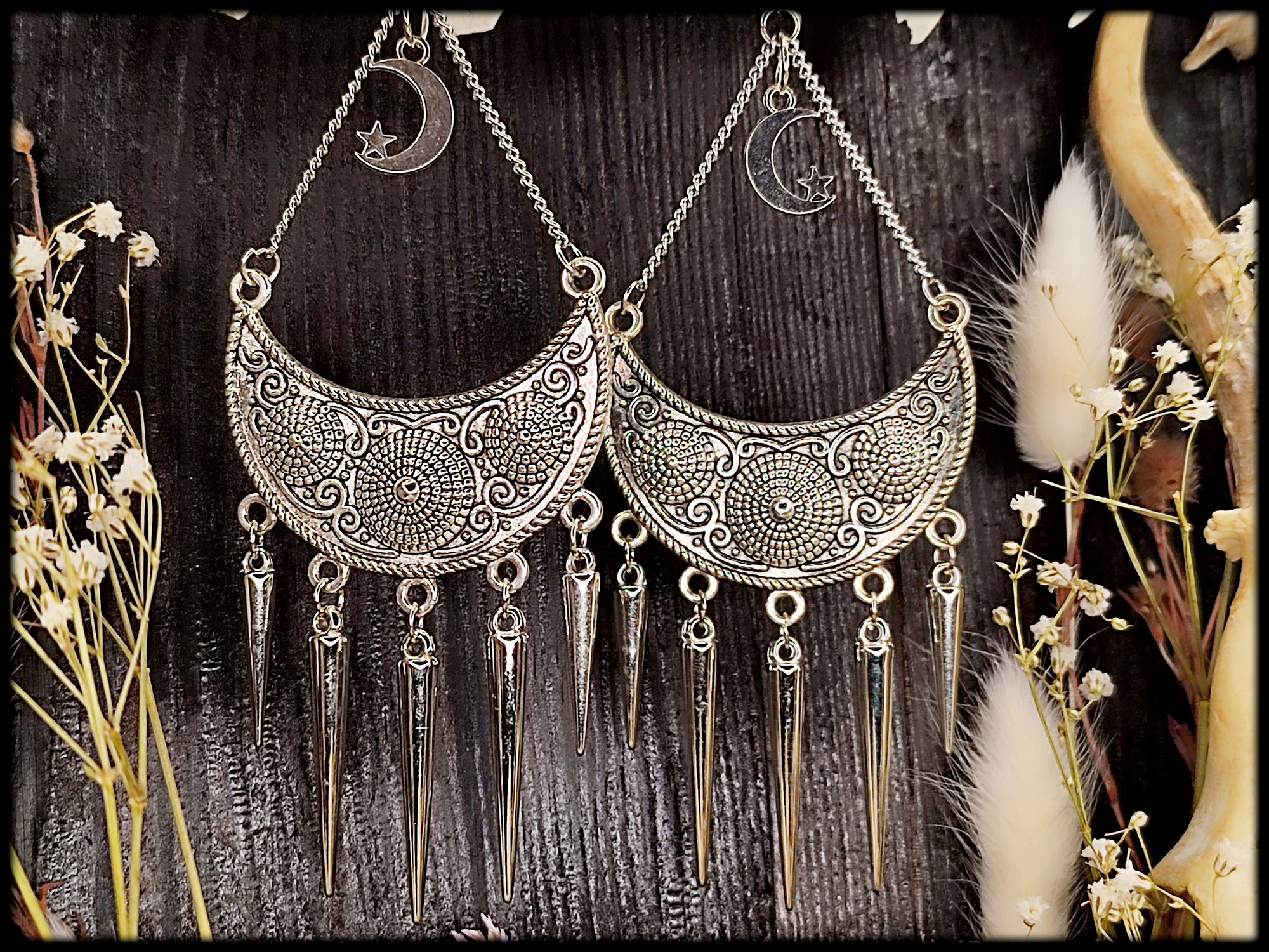 Uniquely handcrafted earrings with spikes & moons. The charm has beautiful filigree decorations. The earrings are a bit heavier according to the size. The spikes ensure a nice ringing on the ear! You can also have the earrings upgraded with 925 sterling silver hooks!